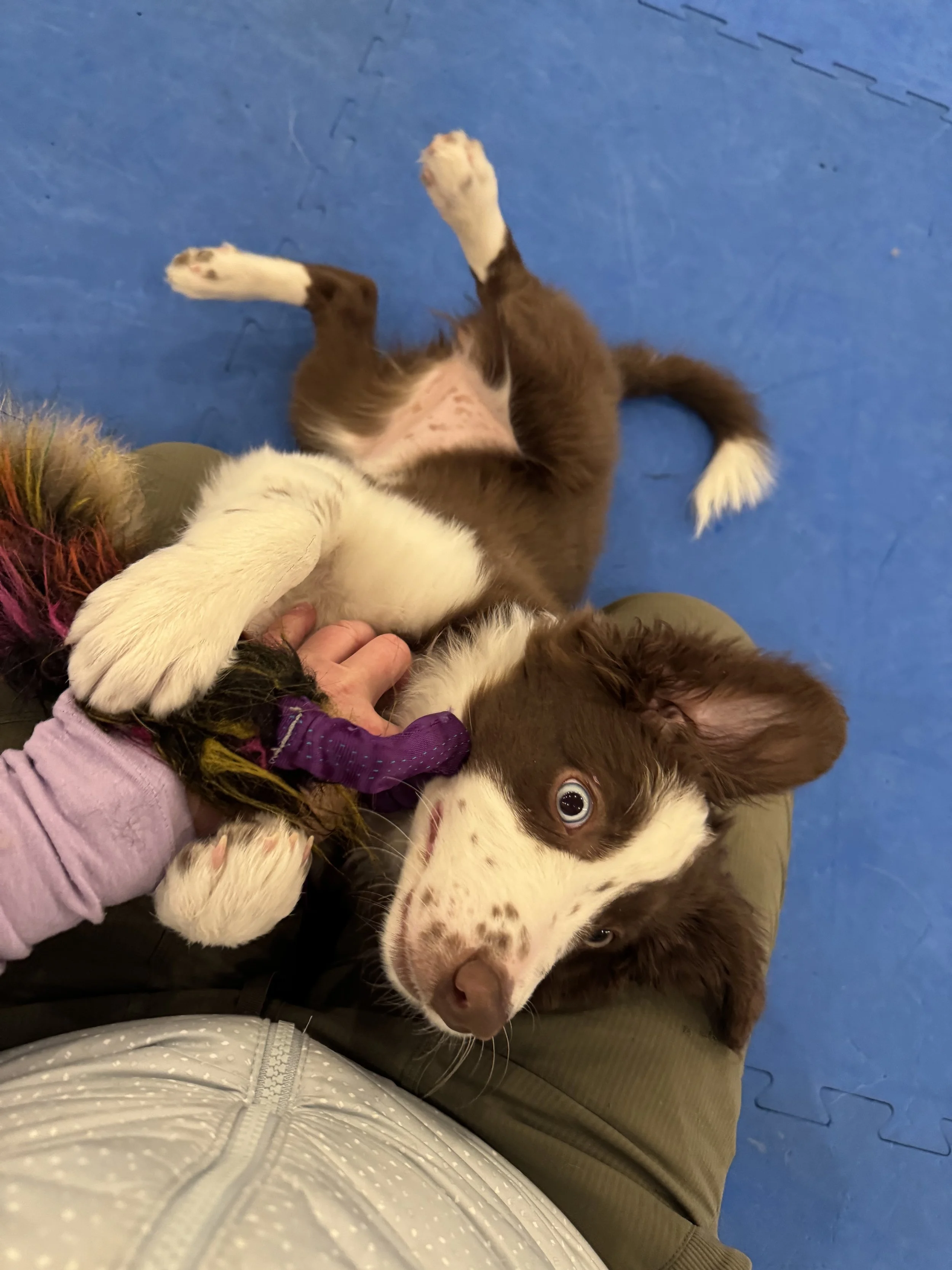 Safe play with puppies matched for age, size, breed, play style, etc., to ensure to a safe and fun learning environment for all